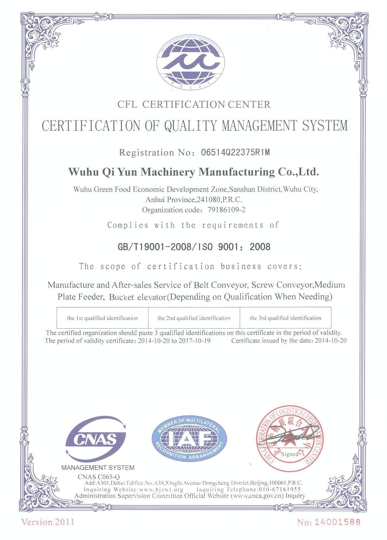 擁有專(zhuān)利特有技術(shù)的“蕪起”牌斗式提升機(jī)以其優(yōu)秀的品質(zhì)、優(yōu)越的環(huán)保性獲得用戶的青睞。產(chǎn)品遍布全國(guó)。。。。